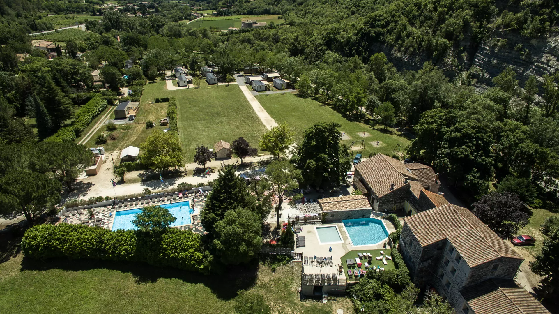 Denne campingplads ligger ved Escoutay-floden, omgivet af orchards, klipper og bakker. Det naturlige miljø, både milde og vilde, inviterer til at afbryde og helbrede.