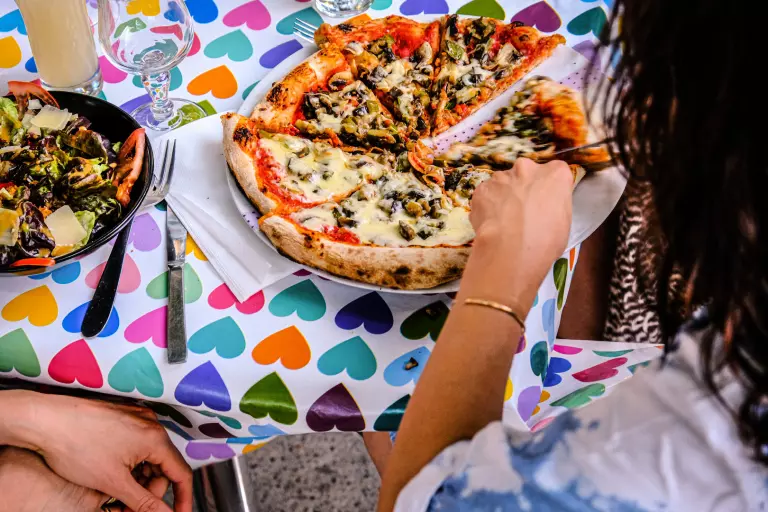 En restaurant tilbyder lokale retter og brændeovn pizzaer, for at nyde på terrassen. Der er også en snack, en bar, et brød depot, en lille købmand, et vaskeri, Wi-Fi i de fælles områder samt cykeludlejning og kajakudlejning.