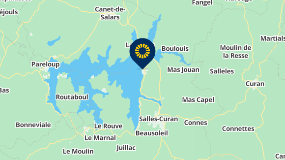 Located in a green countryside, on the shore of the LAKE OF PARELOUP, 2 kms from the village of SALLES-CURAN, campsite BEAU-RIVAGE offers you about 80 terraced plots separated by hedges with an unrestricted view of the lake: plots for tents and caravans or even caravans, mobile homes and bungalows to rent.