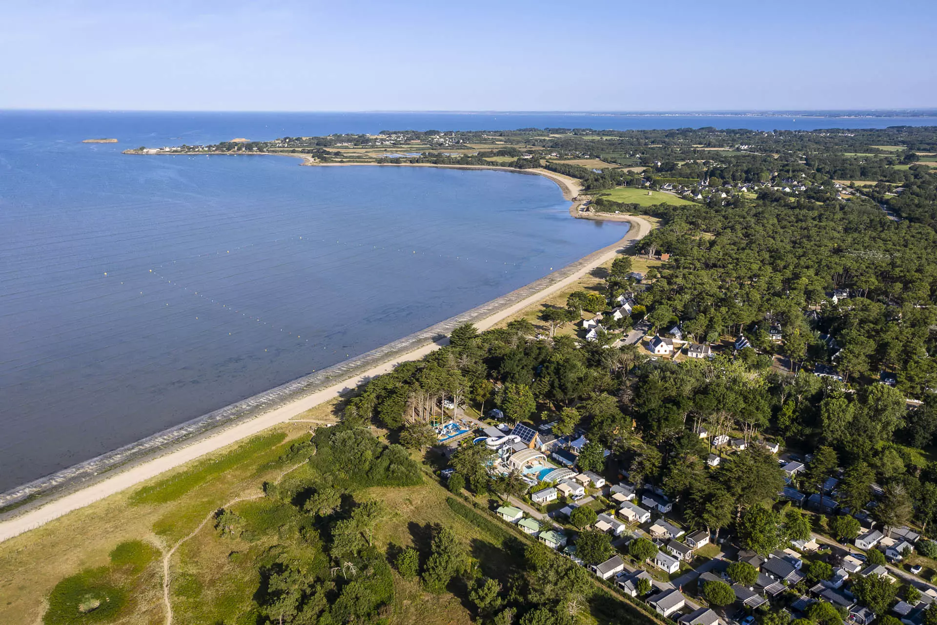 Fra campingpladsen har du direkte adgang til Pont-Mahé-stranden. Med tilnavnet "det vestlige middelhav", er vandtemperaturen usædvanlig mild!