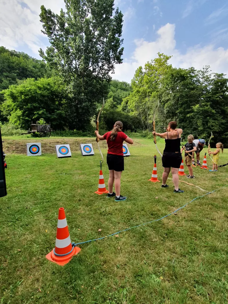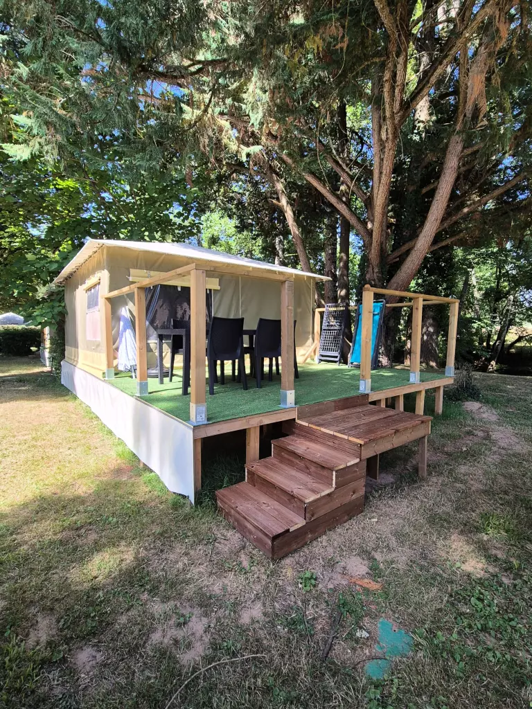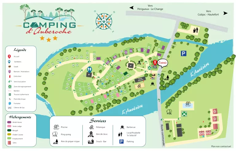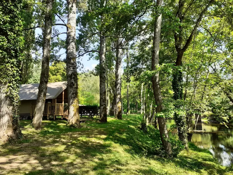 Close to the GR36, this place can be a stopover for hiking enthusiasts. On site you can enjoy the heated swimming pool (from May to September depending on the weather), fishing in the Auvézère, pétanque, table football, ping-pong.... Children are not forgotten with a trampoline, a inflatable structure, .... Karaoke, concerts and theme evenings will liven up your summer evenings. Without forgetting our traditional giant barbecue every Wednesday in the summer. A small night market with local producers and creators comes to the campsite every Thursday evening in July and August.