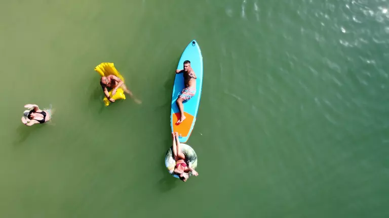 - Privat swimmingpool med sine mange aktiviteter foreslået (pedalo, paddle, lysbilled)