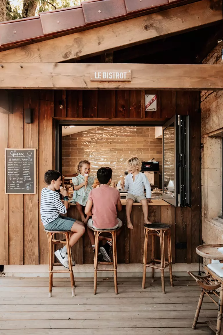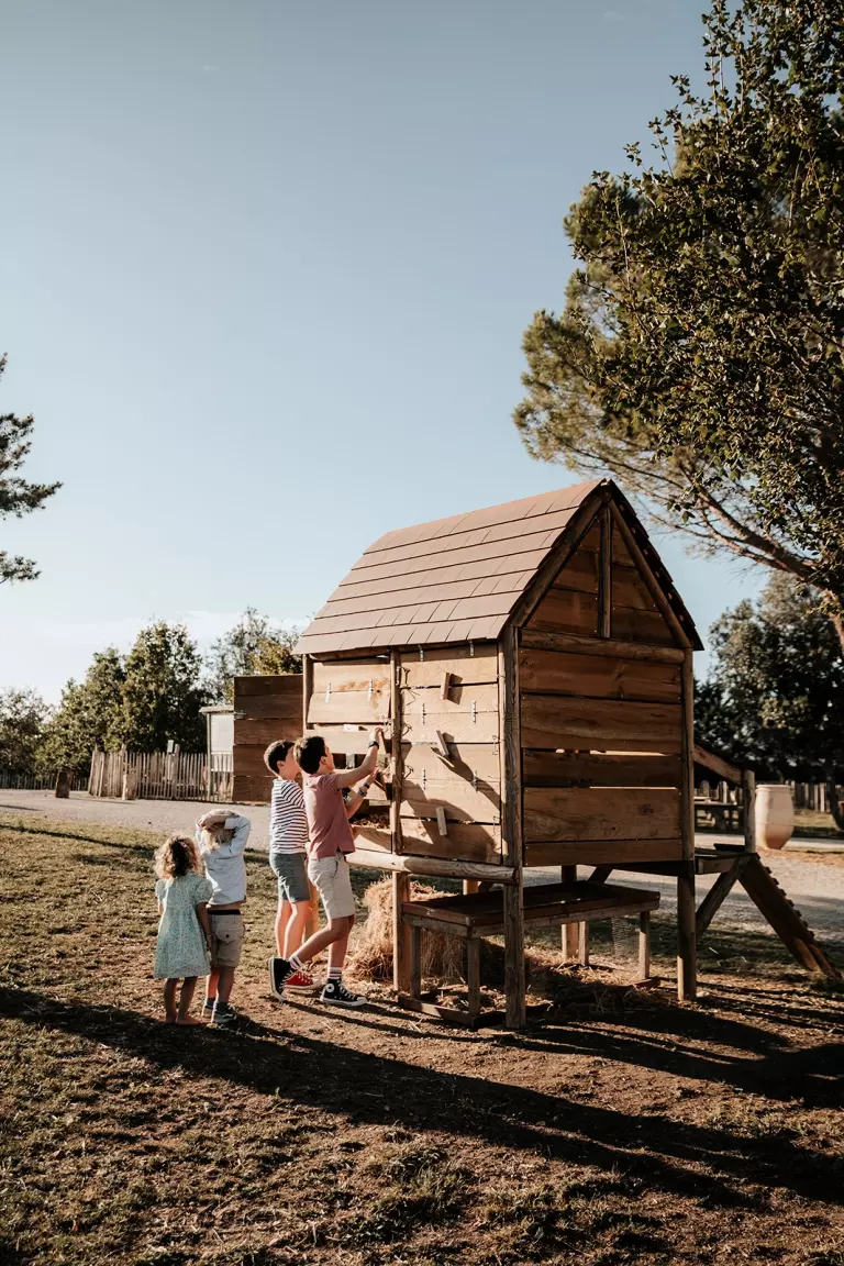 L'aire de jeux à proximité de la terrasse de l'Ouest s'adresse aux jeunes enfants sous la surveillance de leurs parents. Bac à sable, balançoire, trampoline, des jeux en tout genre sont à leur disposition. Ils s'amuseront dans le tipi par temps de pluie et reviendront avec mille souvenirs des ateliers conçus et animés pour eux.