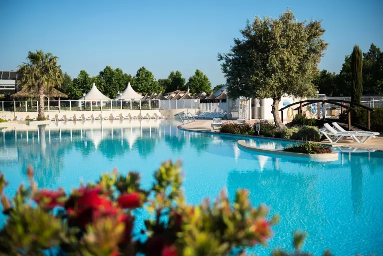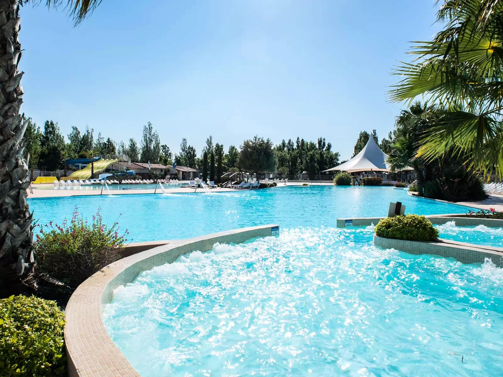 You will be seduced by the palm-fringed water complex with the sublime lagoon pool, the slide and slide tracks, the splashzone, and the balneo benches.