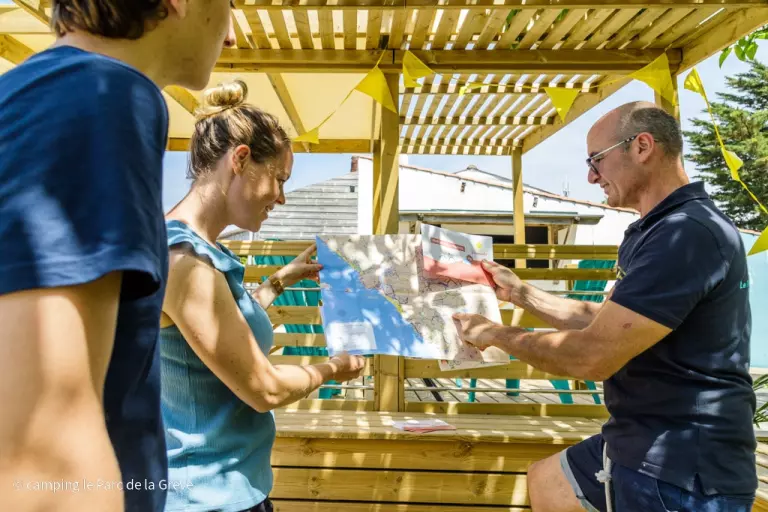 The campsite is ideally located between Saint-Gilles Croix de Vie and Brétignolles sur Mer, a few minutes from Les Sables-d'Olonne and Saint-Jean de Monts. It is not far from leisure park Puy du Fou, the island of Yeu and the Vélodyssée cycle track. In the area, you'll also find a great number of activities: golf, hiking, water sports, angling in the Jaunay lake or the sea.