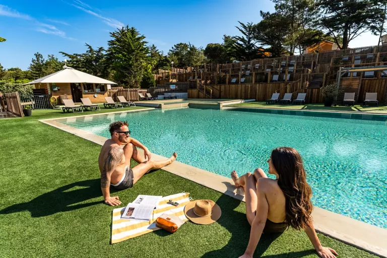 Du vil elske campingpladsen La Grande Côte 4*, en af de få campingpladser rundt om hjørnet med fødder i vandet med, i baggrunden, skoven, der spørger om mere!