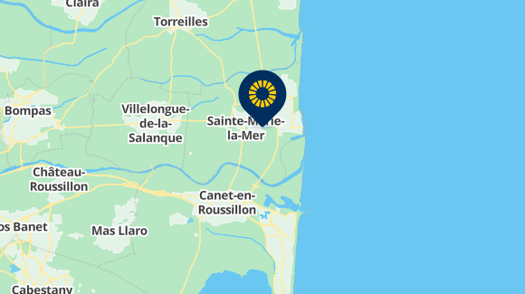 Ideel beliggenhed, mellem Canet-en-Roussillon og Torreilles, kun 1 km fra en smuk vild strand tilgængelig af en fodgængersti, vil du ikke længere nødt til at vælge mellem stranden eller vandparken.