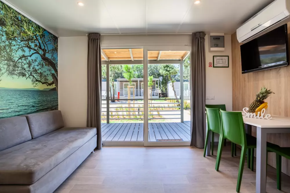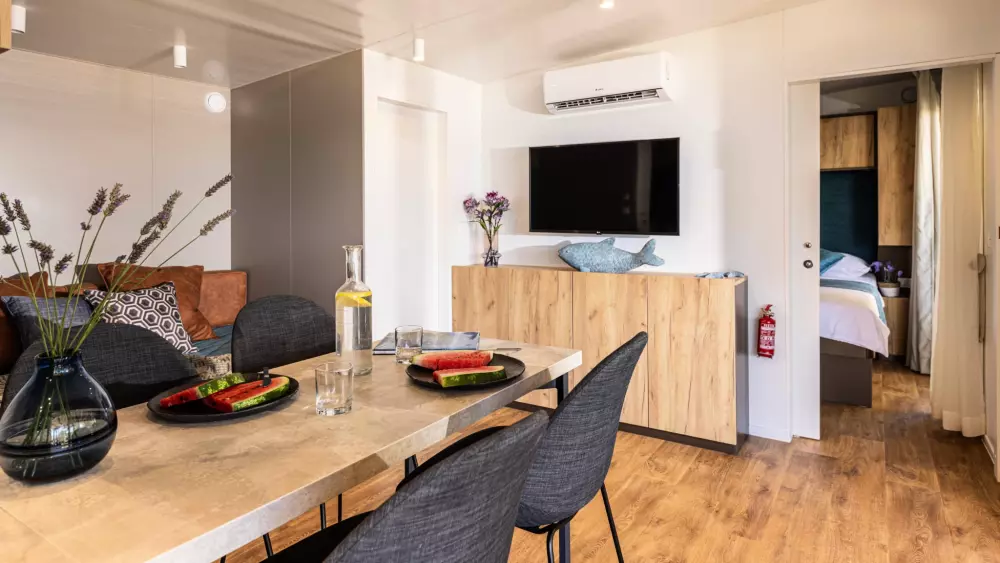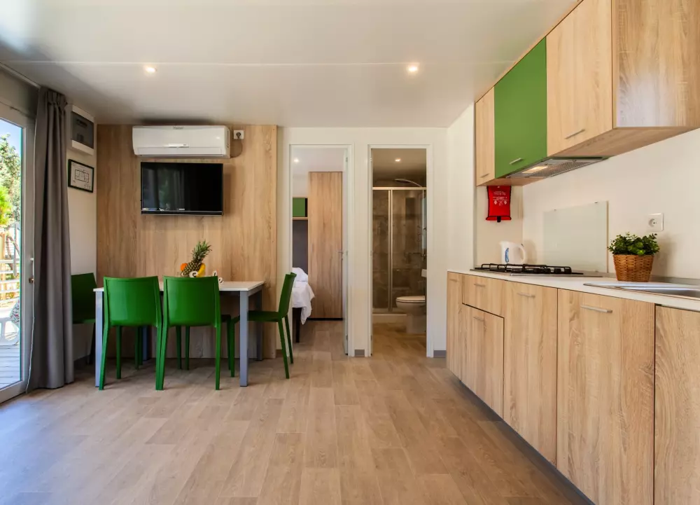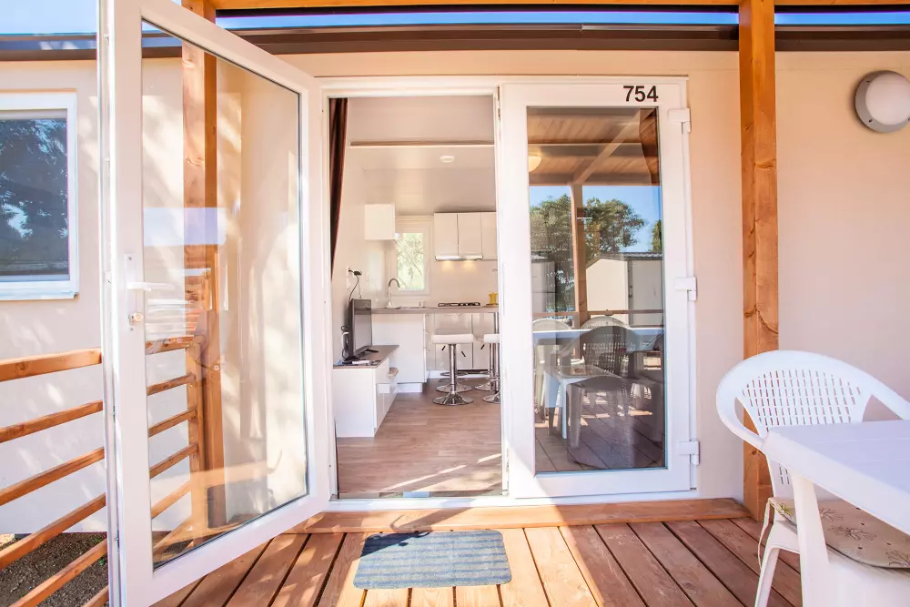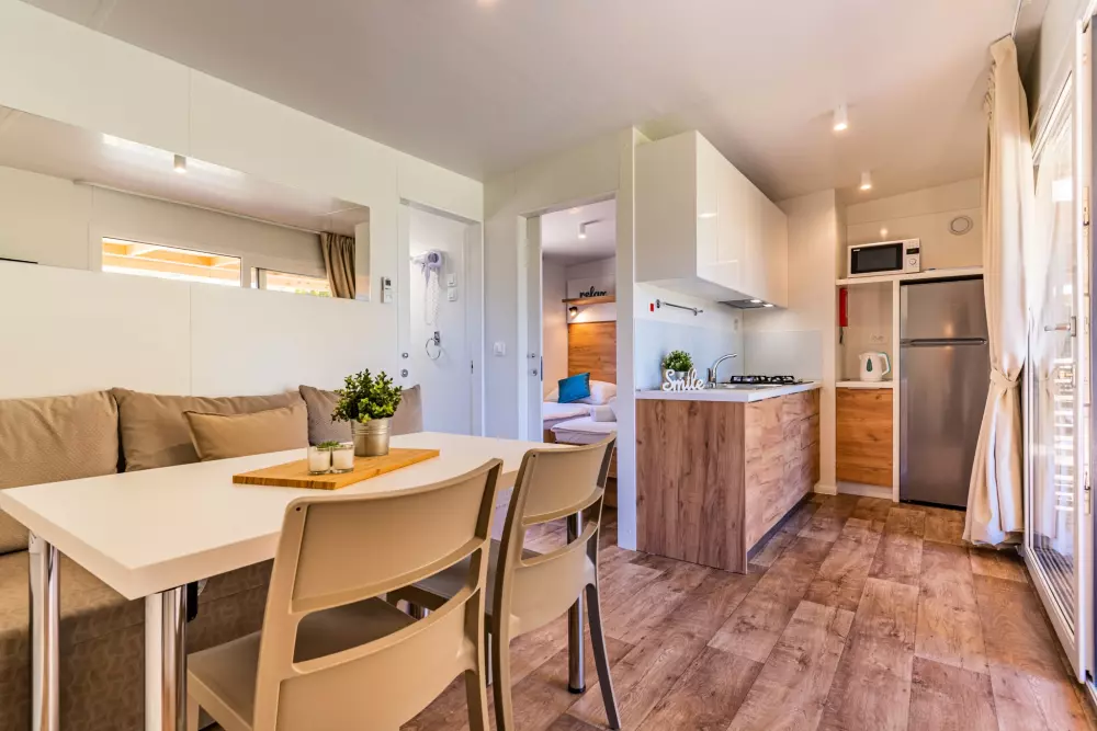 Vis kortRummelige mobile boliger kan rumme en hel familie eller en gruppe venner. Velkommen til din private, aircondition oase med to soveværelser, et fuldt udstyret køkken egnet til madlavning, en spisestue og en terrasse.