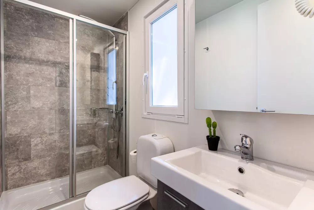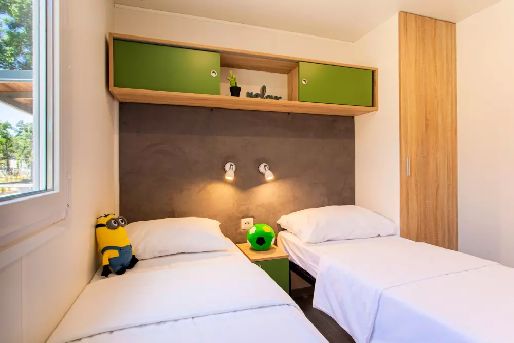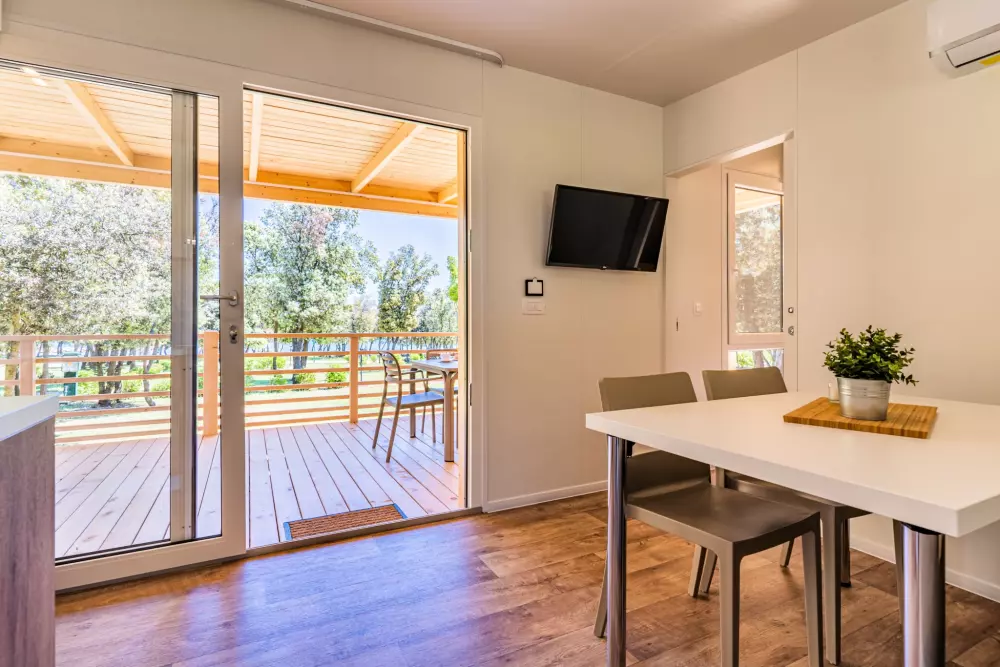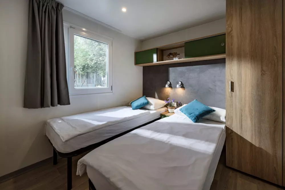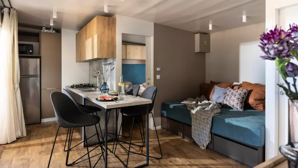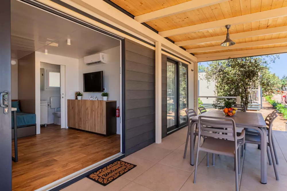 Vis kortRummelige mobile boliger kan rumme en hel familie eller en gruppe venner. Velkommen til din private, aircondition oase med to soveværelser, et fuldt udstyret køkken egnet til madlavning, en spisestue og en terrasse.