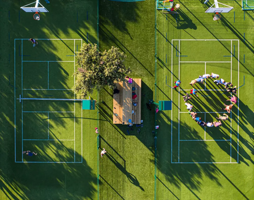 - Mini multisport legepladser til tennis, fodbold, volleyball, basketball og badminton