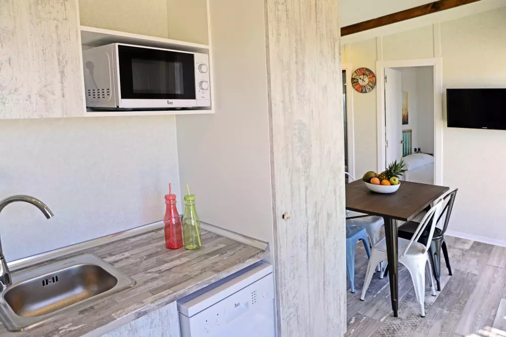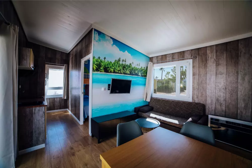 Hvis du ikke er autocamper, behøver du ikke bekymre dig, vi har et resortområde med mere end 200 fuldt udstyrede bungalows. På nogle af værelserne kan gæsterne finde aircondition, tv, køkken, køkkenredskaber og fuldt badeværelse.