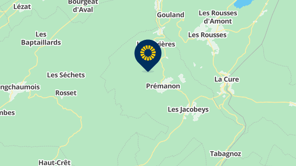> Fra Lyon eller Mâcon A42 eller A40. Oyonnax afkørsel via A404. Slut dig til Saint-Claude via D436. Tag retningen Genève, Lamoura, Prémanon.